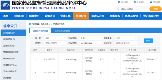 The acceptance of the Lerodalcibep clinical trial application (IND) by the NMPA was based on the integrated data dossier provided by LIB Therapeutics,Inc., including CMC, non-clinical and clinical studies completed in the U.S. and Europe , as well as the clinical development plan in China proposed by Hasten Biopharma.